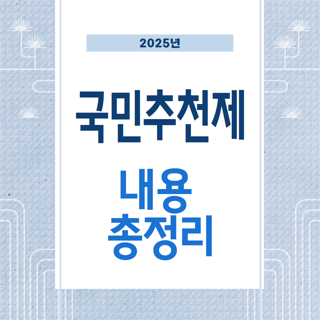 국민추천제는 국민이 직접 고위공직자 후보를 추천할 수 있는 제도입니다. 정부가 운영하는 인재 추천 시스템을 통해 국민 누구나 공직에 적합한 인재를 정부에 추천할 수 있습니다. 해당 제도는 인사혁신처에서 운영 중이며, 주로 장·차관, 공공기관장 등 대통령 임명직을 대상으로 적용됩니다.