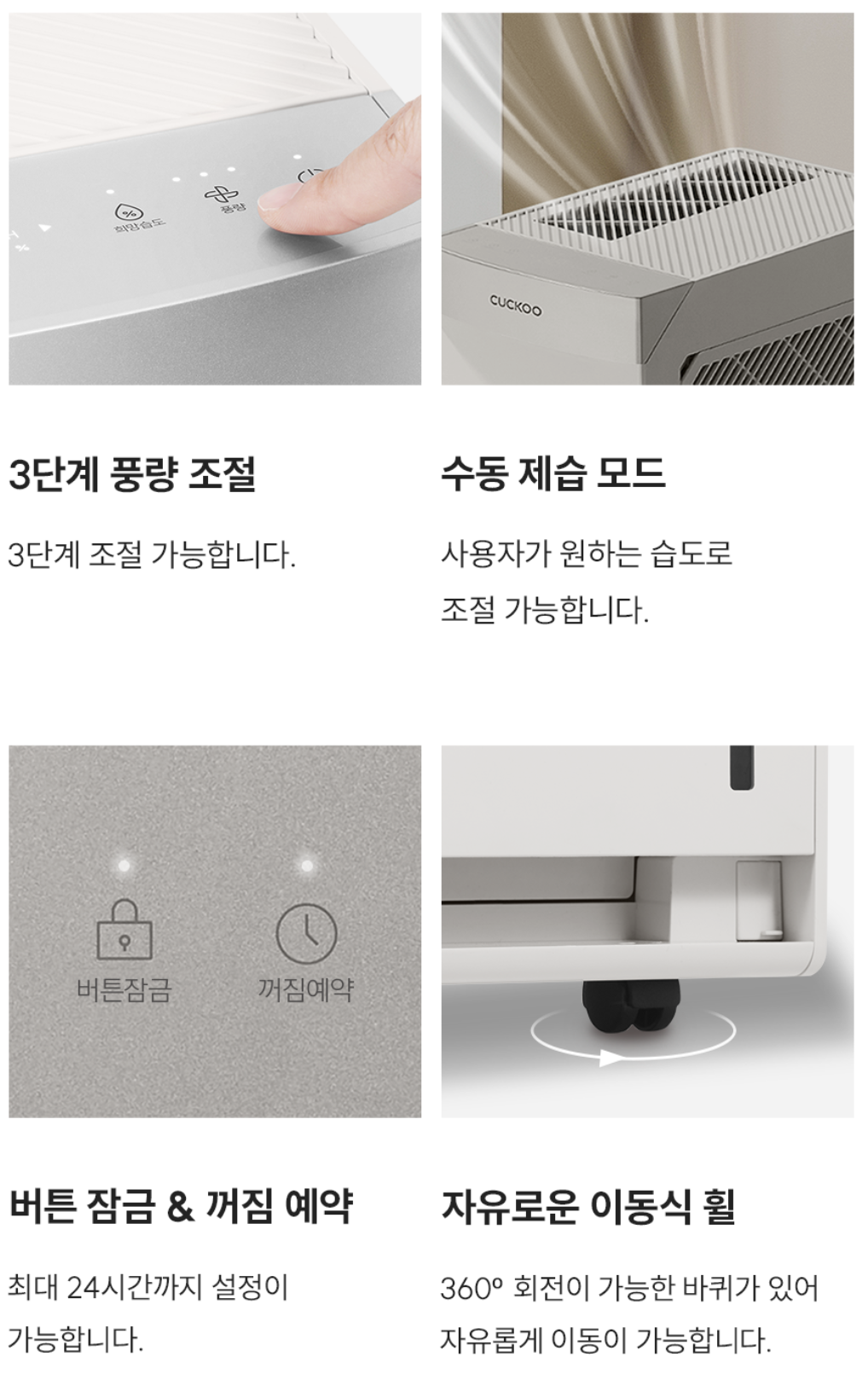 - 원하는 실내 습도를 설정하면, 자동으로 목표 습도에 도달하도록 작동합니다.