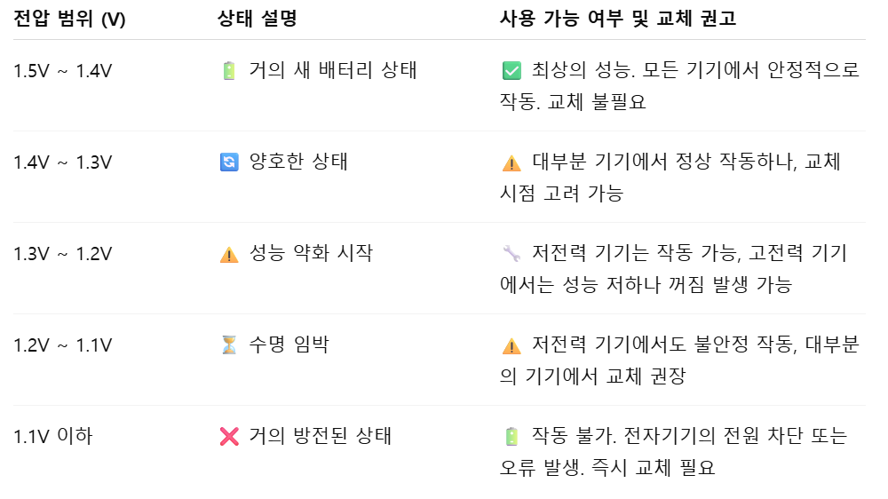 📊 1.5V 건전지 전압별 소모 상태 및 교체 시점 기준
