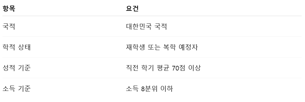 주의할 점은, 휴학생은 원칙적으로 신청이 불가능하며, 단 복학 예정자는 복학 학기 등록 예정 증빙을 제출하면 신청이 가능합니다. 성적 요건은 단순히 학점을 만족시키는 것을 넘어서 학업의지를 평가하는 지표로 작용합니다.